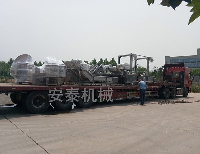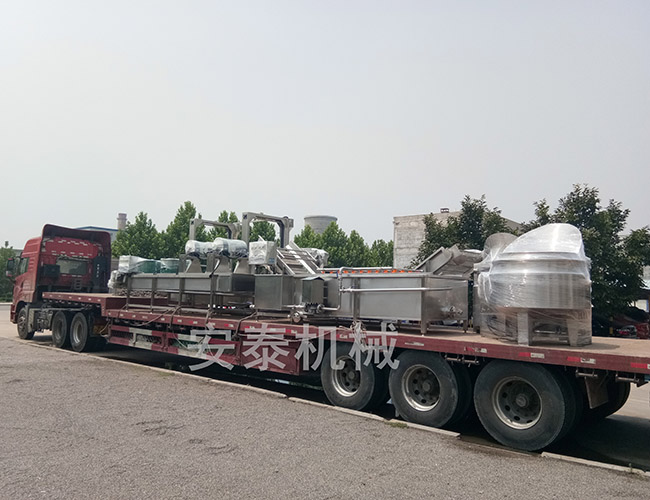 2019年7月15日真是一個(gè)艷陽高照的日子,站在外面能夠切身感受到夏日的熾熱,四川客戶定制了一套流水線設(shè)備,包括高壓氣泡清洗機(jī)、解凍機(jī)、提升機(jī)、攤涼線和自動翻筐夾層鍋,車間師傅把設(shè)備挑到辦公樓前邊,在炎熱的太陽底下打包設(shè)備,用塑料薄膜將所有設(shè)備的關(guān)鍵部位纏起來,在叉車師傅的配合下,將所有的設(shè)備裝上車,現(xiàn)已全部裝車完畢,靜待出發(fā)。