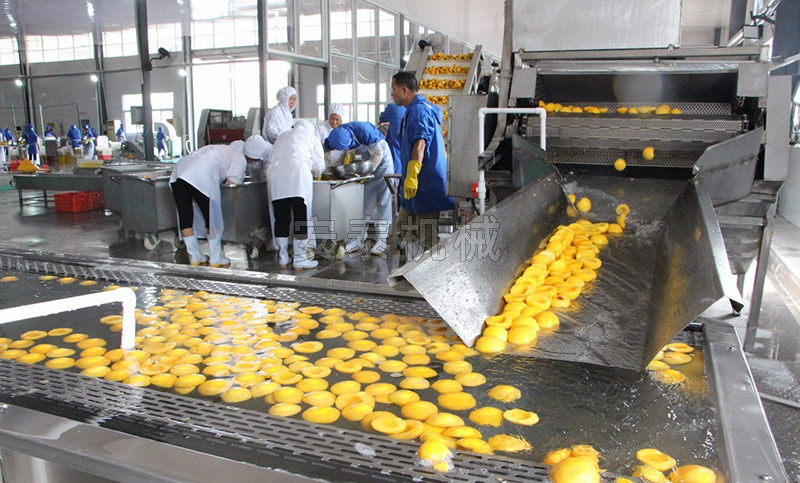 分級---切半---翻瓣淋堿---去皮---漂洗---預煮---裝罐---排氣---貼標